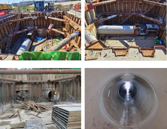 施工前,項(xiàng)目組召開專題研討會(huì),全面分析研判,最終確定施工方案為泥水平衡頂管及無土打壩結(jié)合拉森樁聯(lián)合支護(hù),在施工過程中,項(xiàng)目組加強(qiáng)進(jìn)度控制及質(zhì)量管理。施工現(xiàn)場(chǎng)夜以繼日,采用24小時(shí)不間斷流水施工作業(yè),工程于8月18日開始頂進(jìn)施工,8月28日北側(cè)管道貫通,9月12日南側(cè)管道貫通,在保證安全及質(zhì)量的前提下將頂管施工整體工期壓縮至25天,減少了7天。